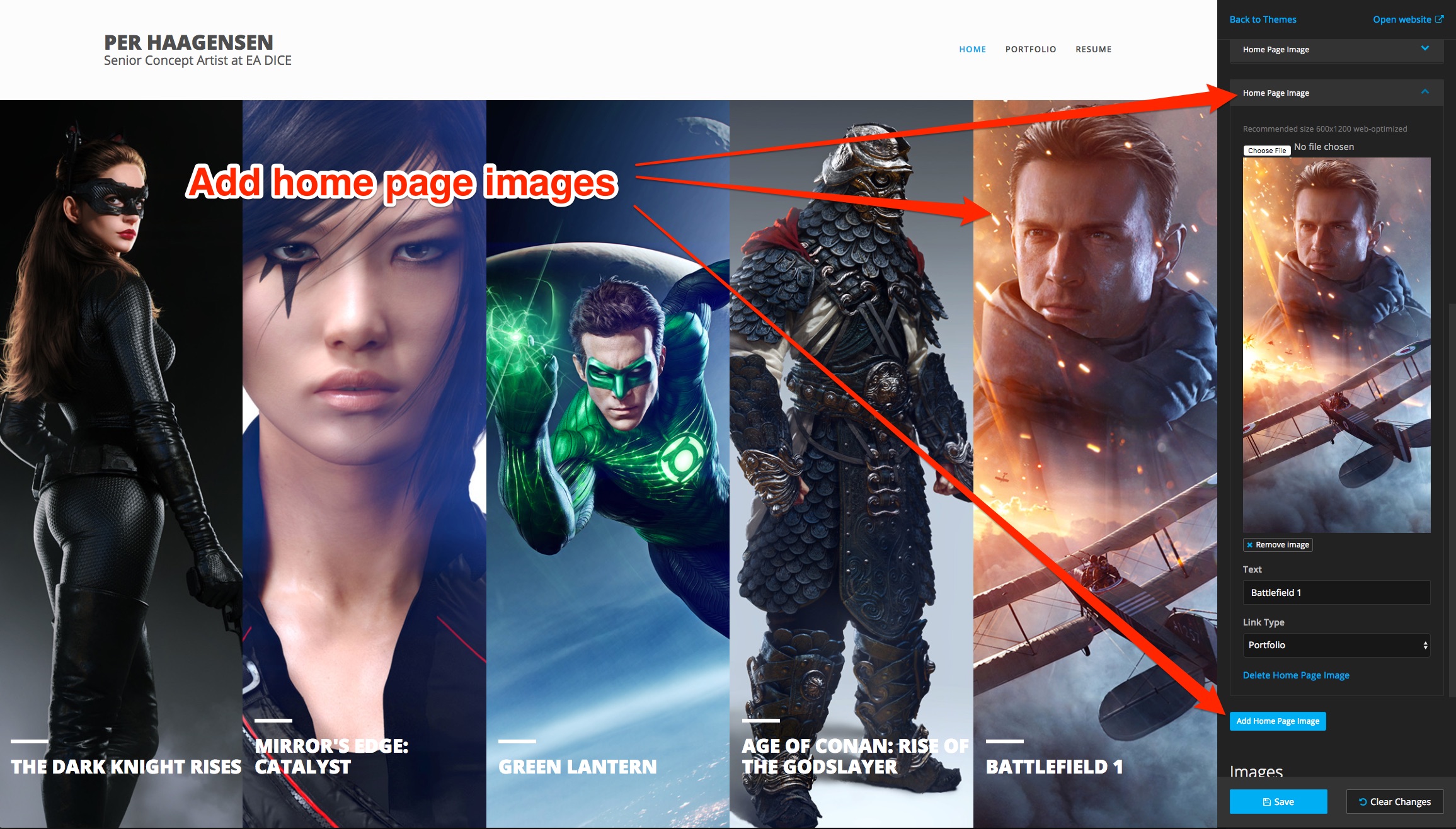 Customize the theme settings and upload the vertical images. You can link each image to certain sections of your website.