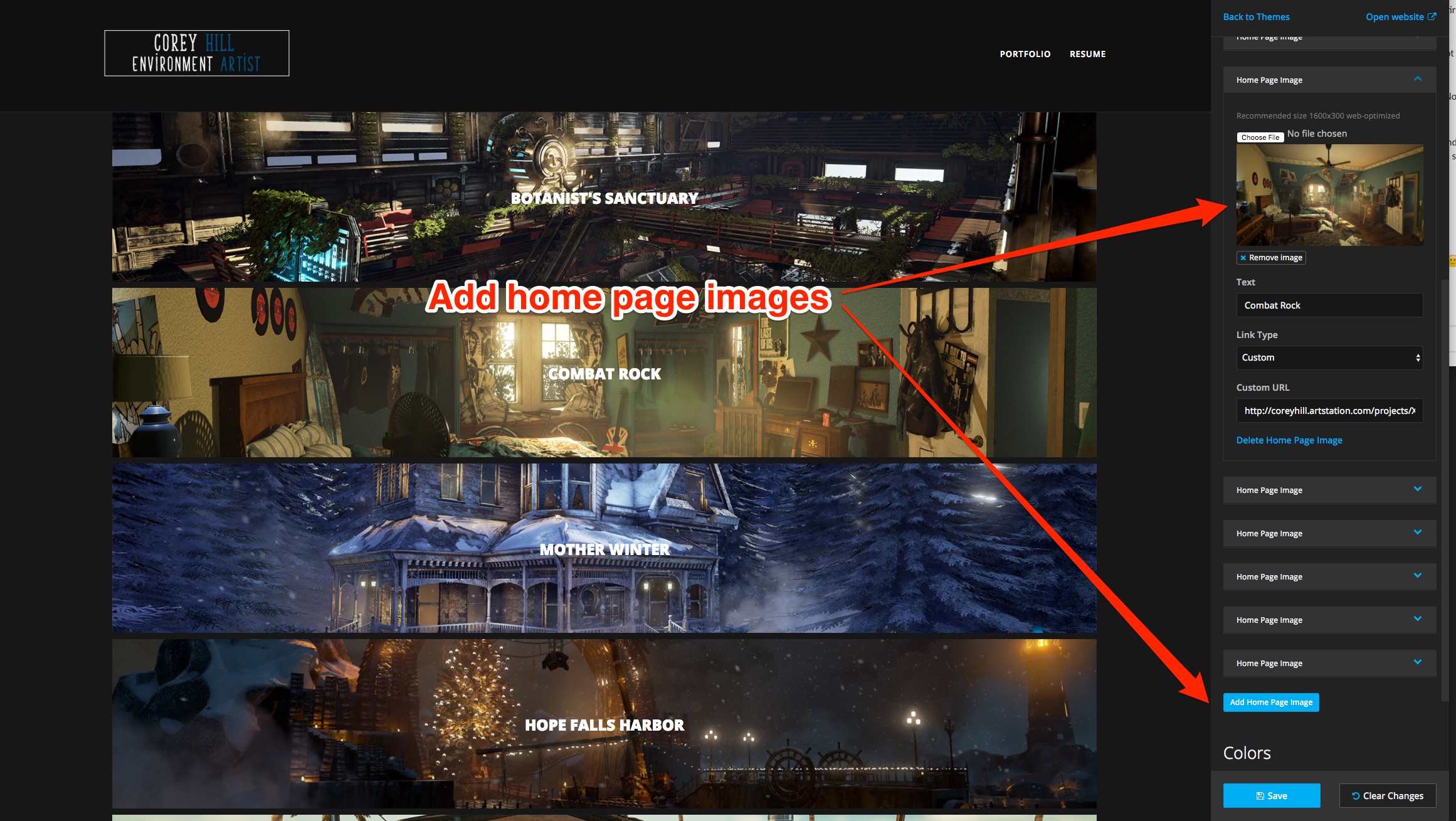 The Horizon theme is designed for artists who have work that is horizontal in nature - e.g. matte paintings, environment art, weapons. We replace the home page with horizontal images that you can control.
